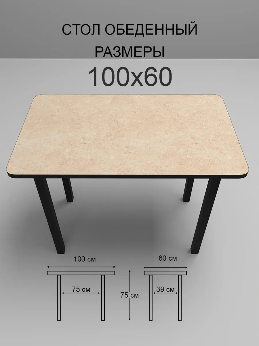 Столешница выполнена из качественного ЛДСП толщиной 2.2 см, что гарантирует прочность и надежность конструкции. Прямоугольная форма столешницы размером 100х60 см позволяет разместить за ним достаточное количество людей, а высота стола составляет 76 см, что делает его удобным для использования как взрослыми, так и детьми.
