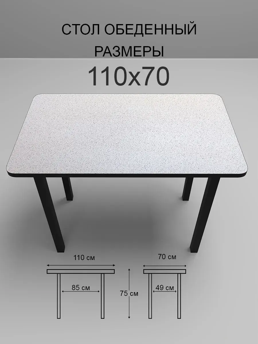 Столешница выполнена из качественного ЛДСП толщиной 2.2 см, что гарантирует прочность и надежность конструкции. Прямоугольная форма столешницы размером 110х70 см позволяет разместить за ним достаточное количество людей, а высота стола составляет 76 см, что делает его удобным для использования как взрослыми, так и детьми.