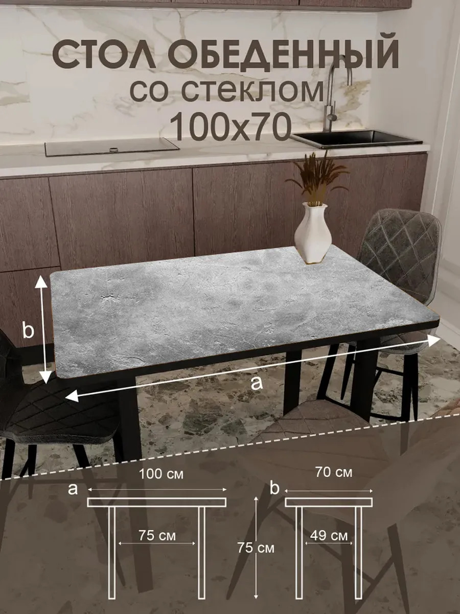 Обеденный стол "Бетон" 100x70 см - стильный и функциональный элемент интерьера, который станет незаменимым помощником на вашей кухне или в столовой.