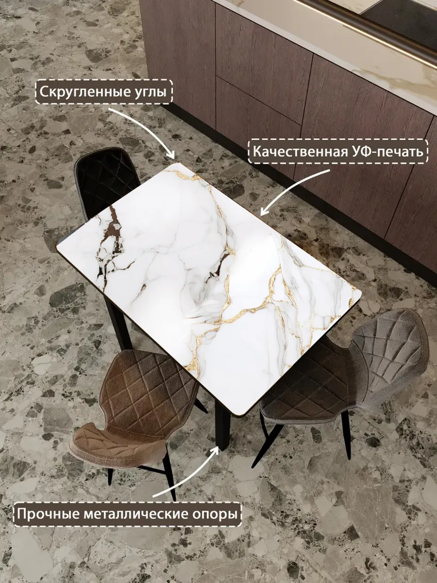 Обеденный стол "Calacatta" 90x60 см - стильный и функциональный элемент интерьера, который станет незаменимым помощником на вашей кухне или в столовой.
