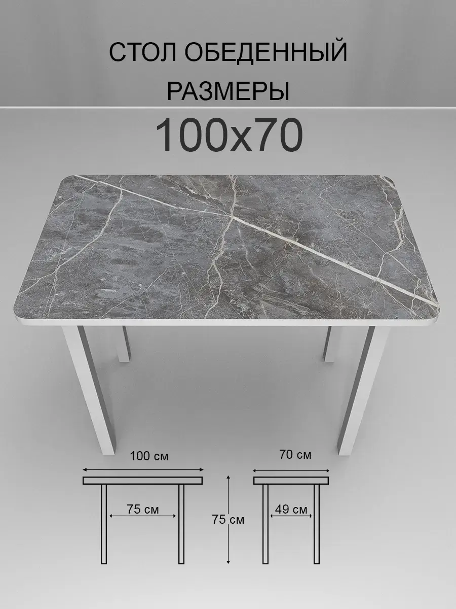 Столешница выполнена из качественного ЛДСП толщиной 2.2 см, что гарантирует прочность и надежность конструкции. Прямоугольная форма столешницы размером 100х70 см позволяет разместить за ним достаточное количество людей, а высота стола составляет 76 см, что делает его удобным для использования как взрослыми, так и детьми.