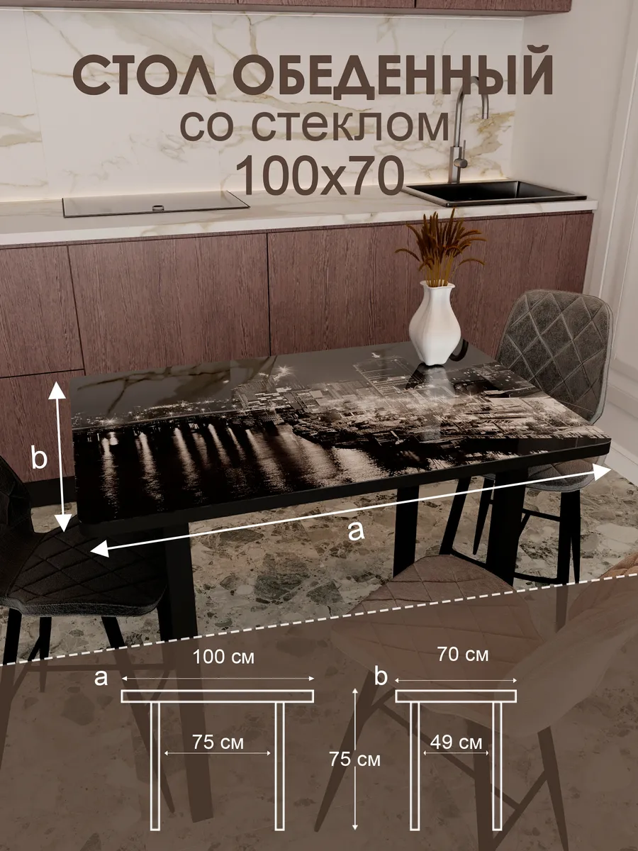 Обеденный стол "Город" 100x70 см - стильный и функциональный элемент интерьера, который станет незаменимым помощником на вашей кухне или в столовой.