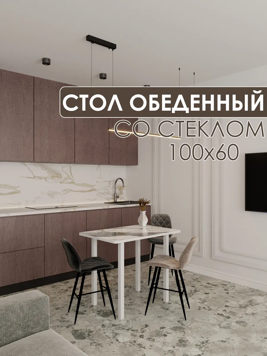 Обеденный стол "Гранит белый" 100x60 см - стильный и функциональный элемент интерьера, который станет незаменимым помощником на вашей кухне или в столовой.