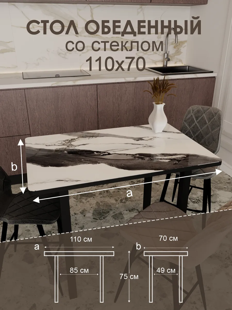 Обеденный стол "Гранит белый" 110x70 см - стильный и функциональный элемент интерьера, который станет незаменимым помощником на вашей кухне или в столовой.