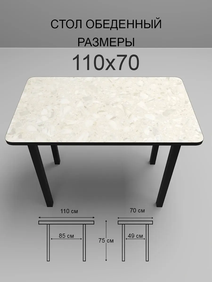 Стол выполнен в прямоугольной форме, что позволяет его удобно разместить в любом помещении. Размеры стола составляют 110х70х76 см, что обеспечивает достаточное пространство для размещения обеденной группы.