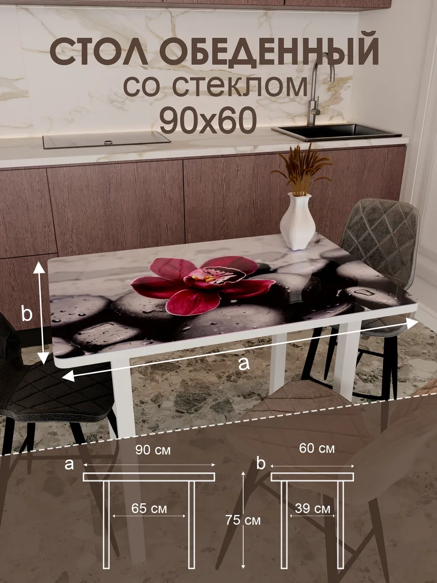 Обеденный стол "Красная орхидея" 90x60 см - стильный и функциональный элемент интерьера, который станет незаменимым помощником на вашей кухне или в столовой.