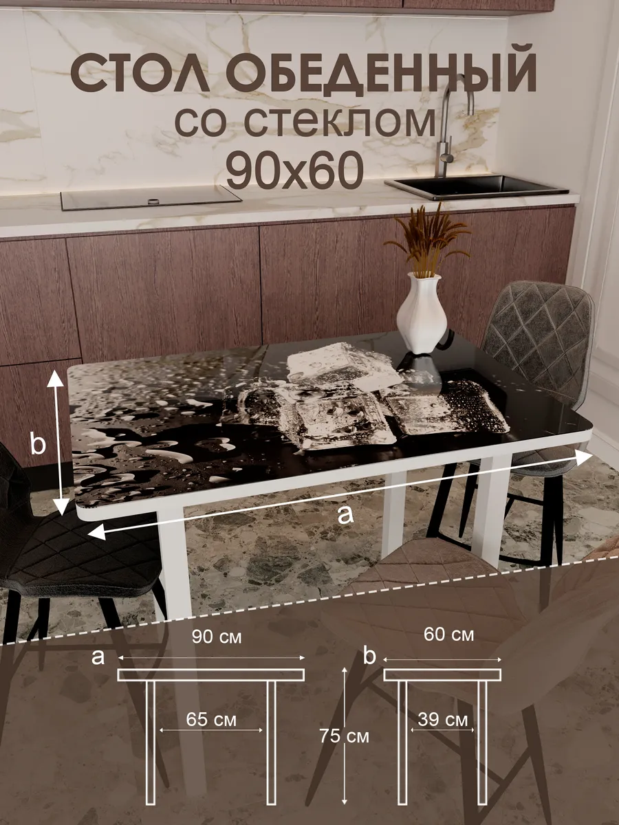 Обеденный стол "Лёд" 90x60 см - стильный и функциональный элемент интерьера, который станет незаменимым помощником на вашей кухне или в столовой.