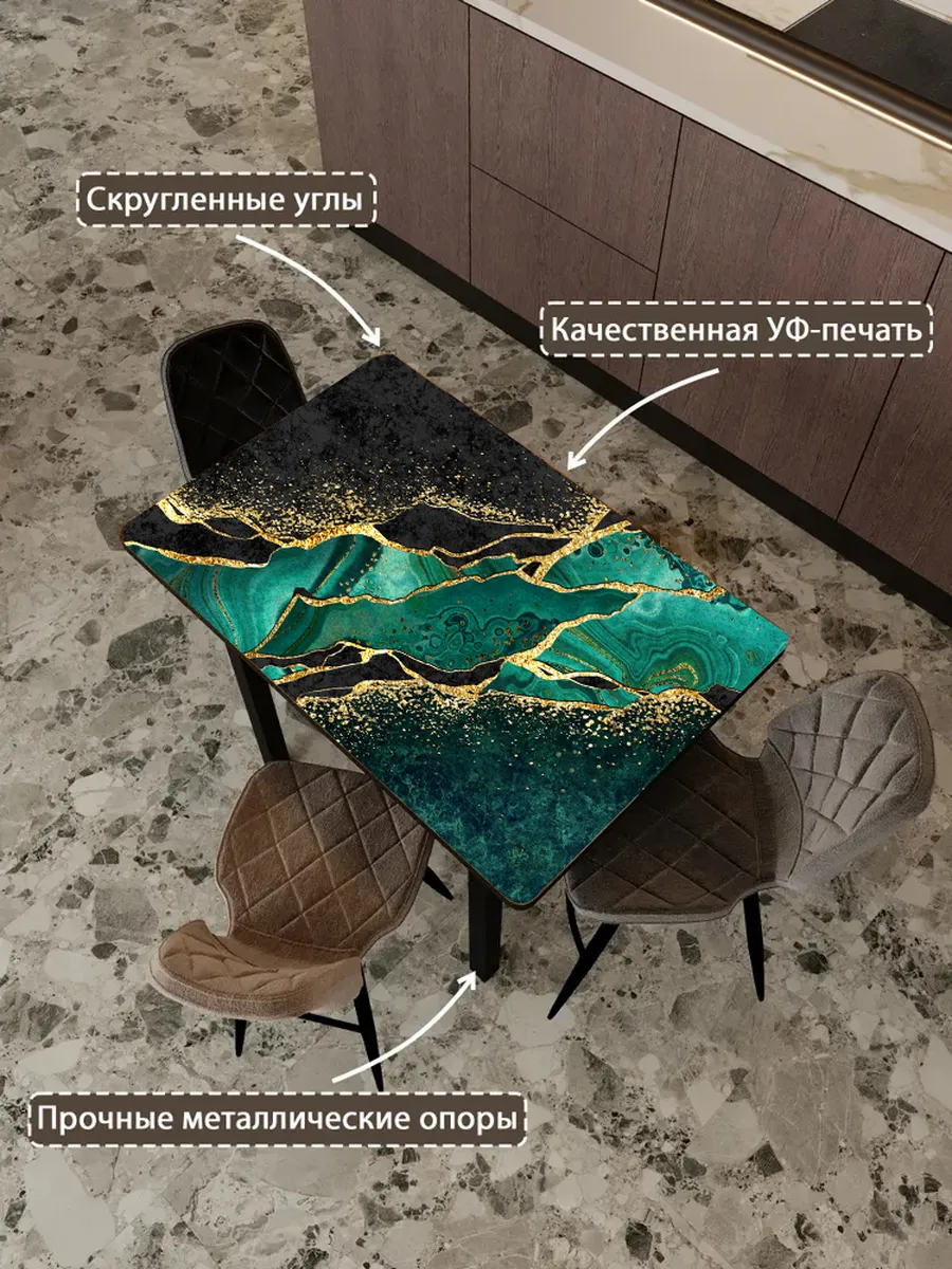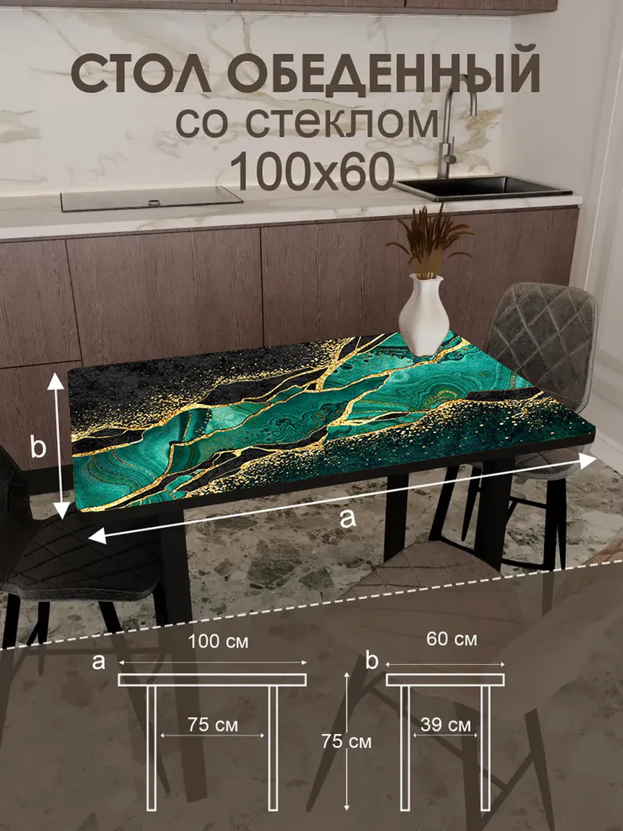 Обеденный стол "Малахит" 100x60 см - стильный и функциональный элемент интерьера, который станет незаменимым помощником на вашей кухне или в столовой.
