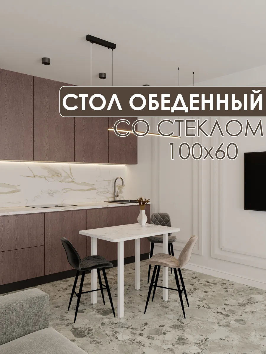 Обеденный стол "Мрамор белый" 100x60 см - стильный и функциональный элемент интерьера, который станет незаменимым помощником на вашей кухне или в столовой.