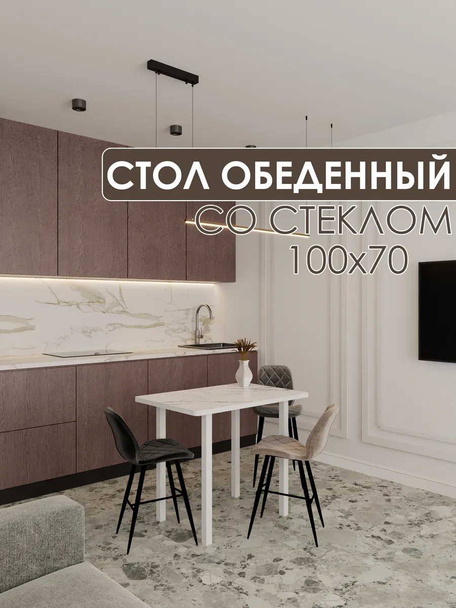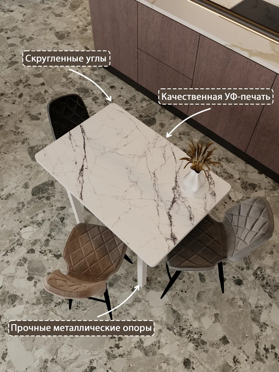 Обеденный стол "Мрамор белый" 100x70 см - стильный и функциональный элемент интерьера, который станет незаменимым помощником на вашей кухне или в столовой.