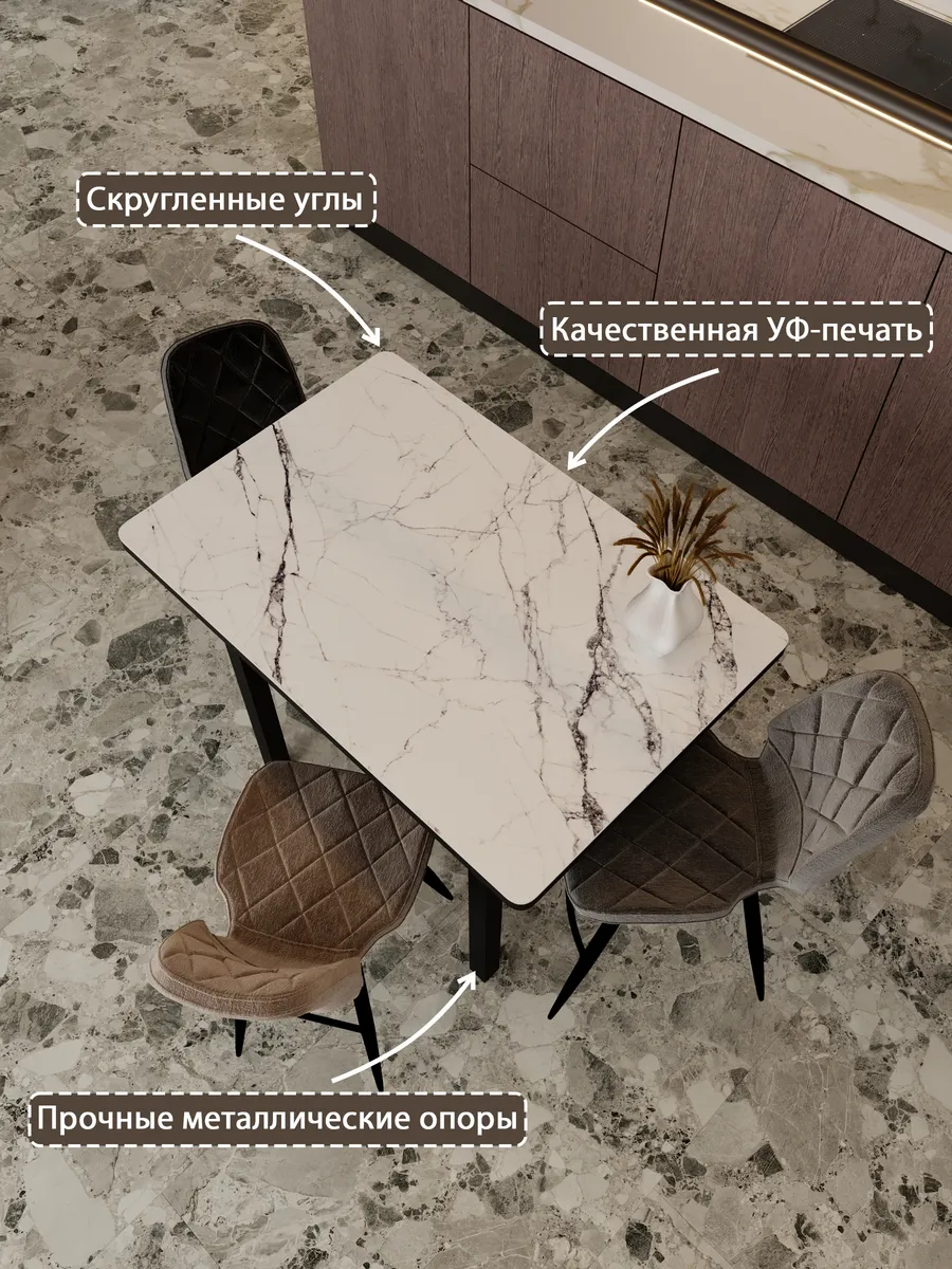 Обеденный стол "Мрамор белый" 100x70 см - стильный и функциональный элемент интерьера, который станет незаменимым помощником на вашей кухне или в столовой.