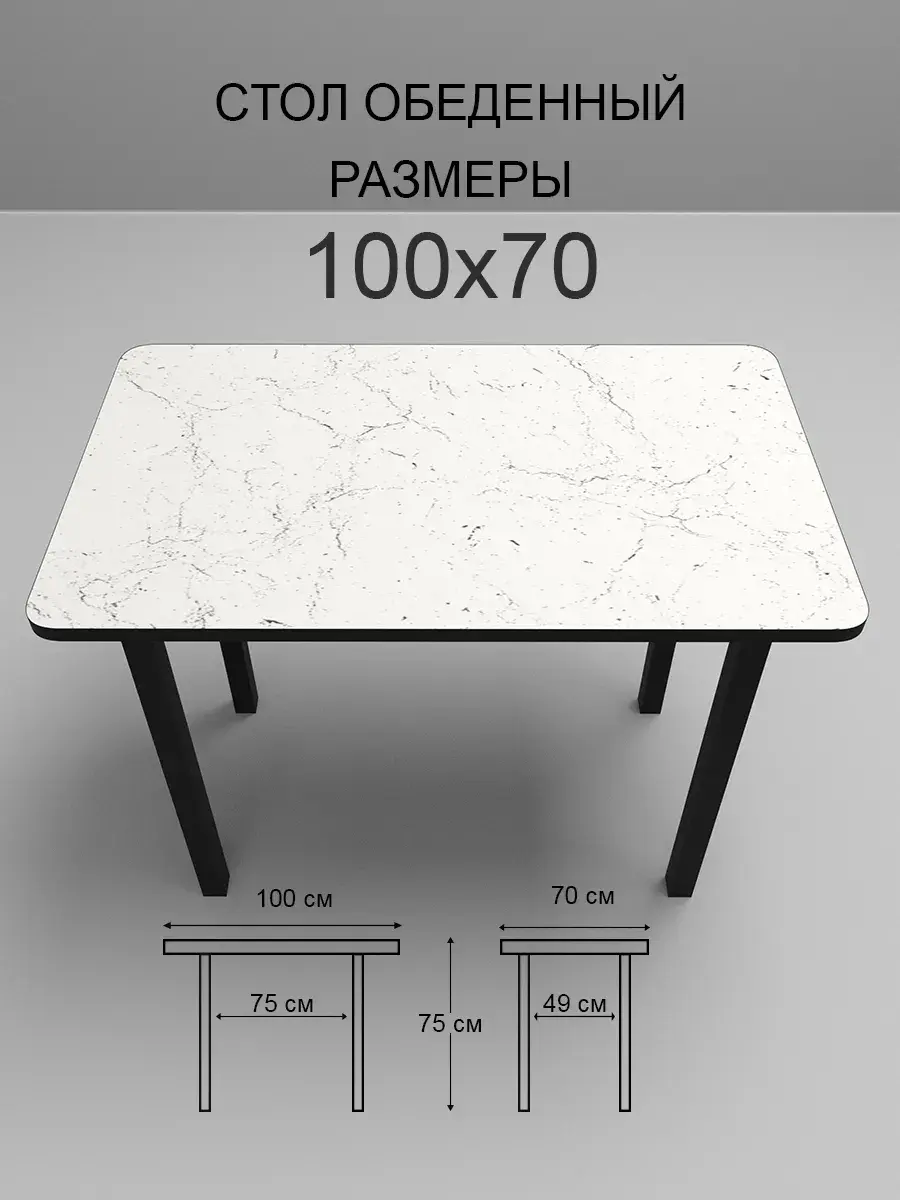 Обеденный стол с пластиковым покрытием "Мрамор Марквина белый" - это стильное и функциональное решение для вашей кухни или столовой. Размеры стола составляют 100х70х76 см, что позволяет разместить за ним достаточное количество людей для приятного обеда или ужина.
