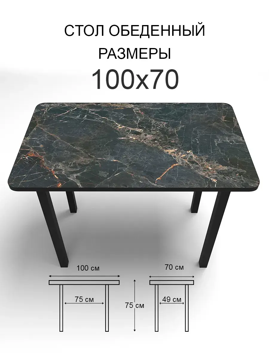 Обеденный стол с пластиковым покрытием "Мрамор Марквина черный" - это стильный и функциональный элемент интерьера, который станет незаменимым помощником на вашей кухне.