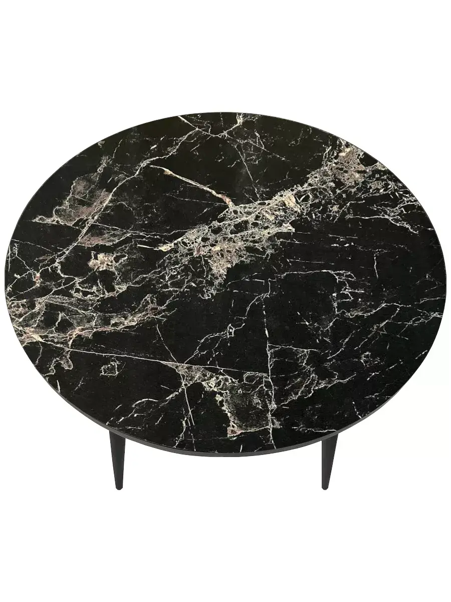 Обеденный стол с пластиковым покрытием "Мрамор марквина черный" - это стильный и функциональный элемент интерьера, который станет незаменимым помощником на вашей кухне или в столовой. Классический круглый дизайн стола придает ему особый шарм и позволяет гармонично вписаться в любой интерьер.