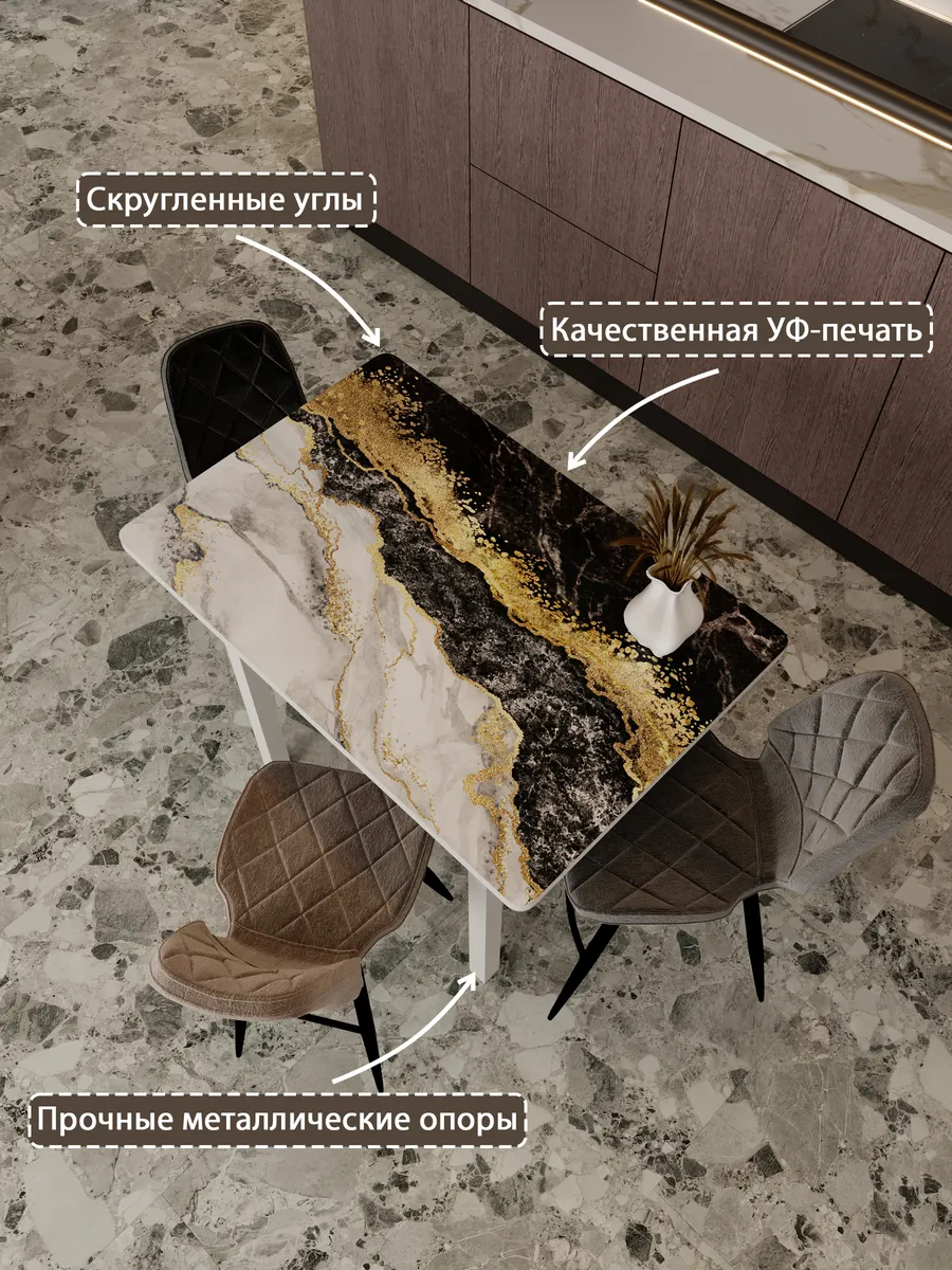 Обеденный стол "Мрамор золотой" 110x70 см - стильный и функциональный элемент интерьера, который станет незаменимым помощником на вашей кухне или в столовой.