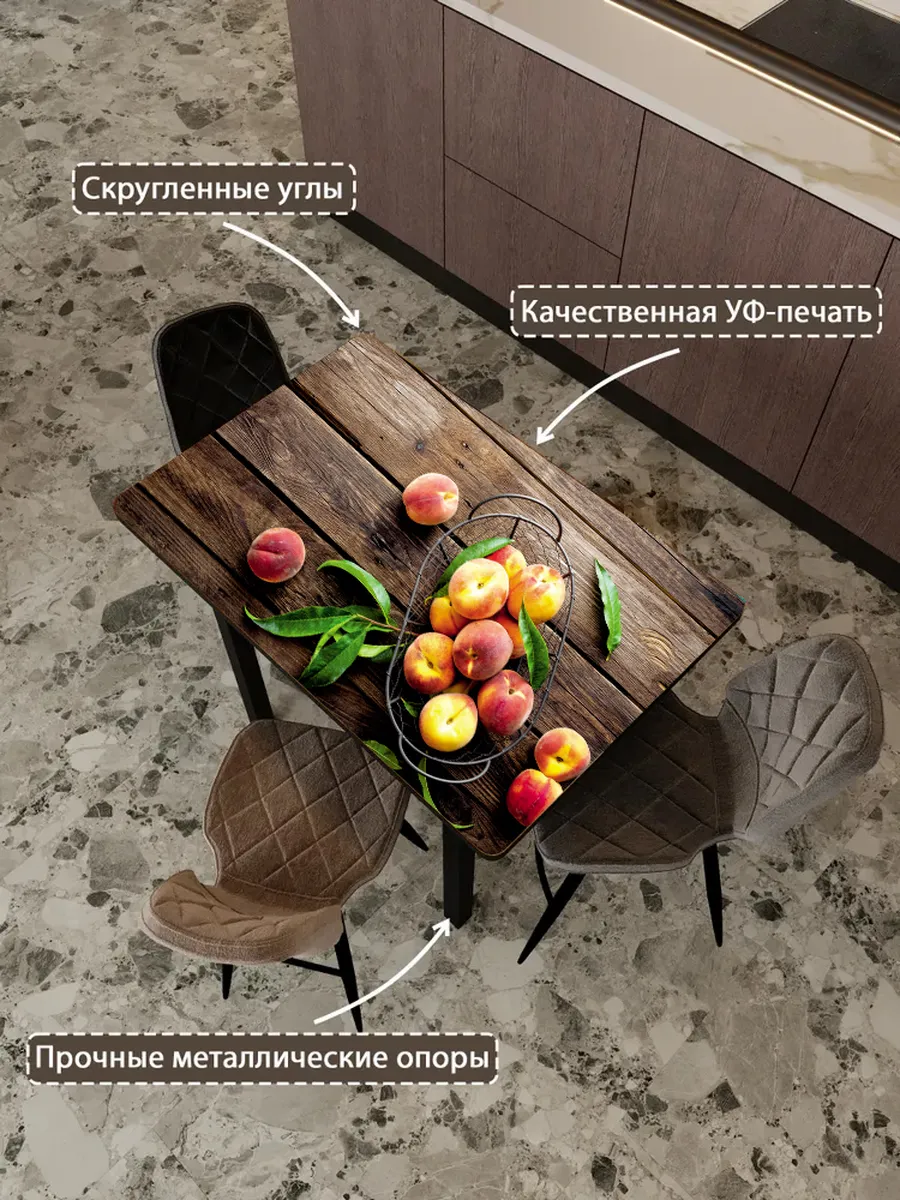 Обеденный стол "Персики" 100x70 см - стильный и функциональный элемент интерьера, который станет незаменимым помощником на вашей кухне или в столовой.