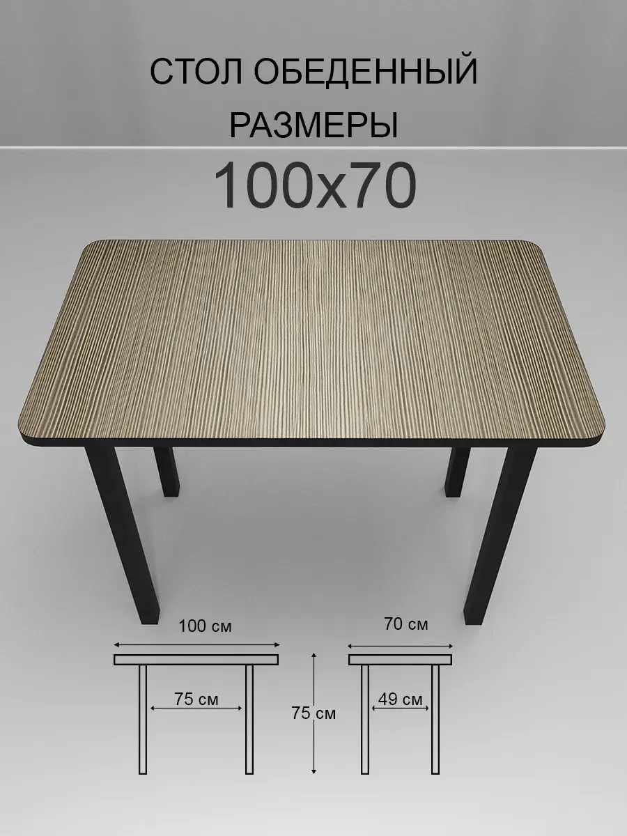 Стол имеет прямоугольную форму и стандартные размеры: длина - 100 см, ширина - 70 см, высота - 76 см. Это позволяет разместить его даже в небольших помещениях, не занимая много места.