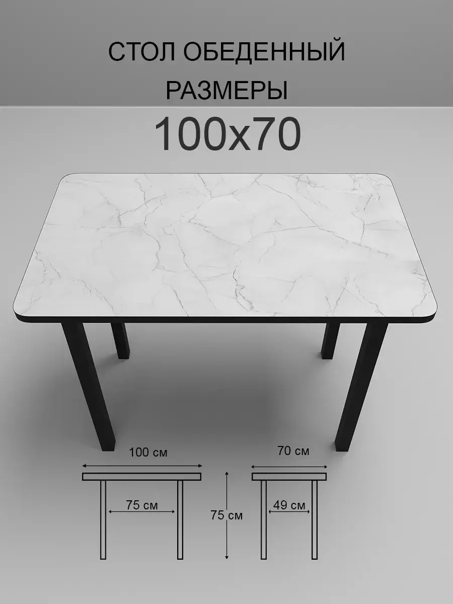 Прочность и надежность конструкции обеспечивается столешницей из качественного ЛДСП толщиной 2.2 см. Прямоугольная форма столешницы размером 100х70 см позволяет разместить за ним достаточное количество людей, а высота стола составляет 76 см, что делает его удобным для использования как взрослыми, так и детьми.