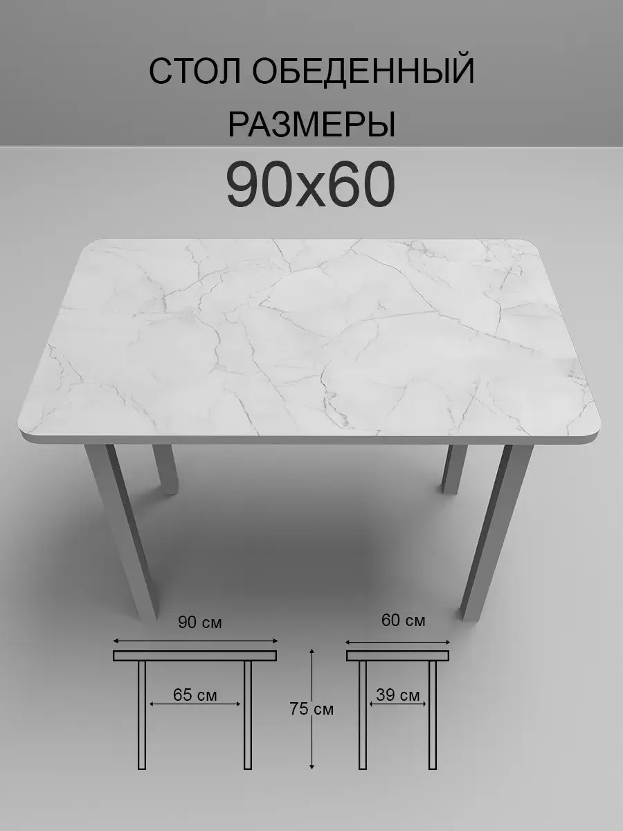 Прочность и надежность конструкции обеспечивается столешницей из качественного ЛДСП толщиной 2.2 см. Прямоугольная форма столешницы размером 90х60 см позволяет разместить за ним достаточное количество людей, а высота стола составляет 76 см, что делает его удобным для использования как взрослыми, так и детьми.