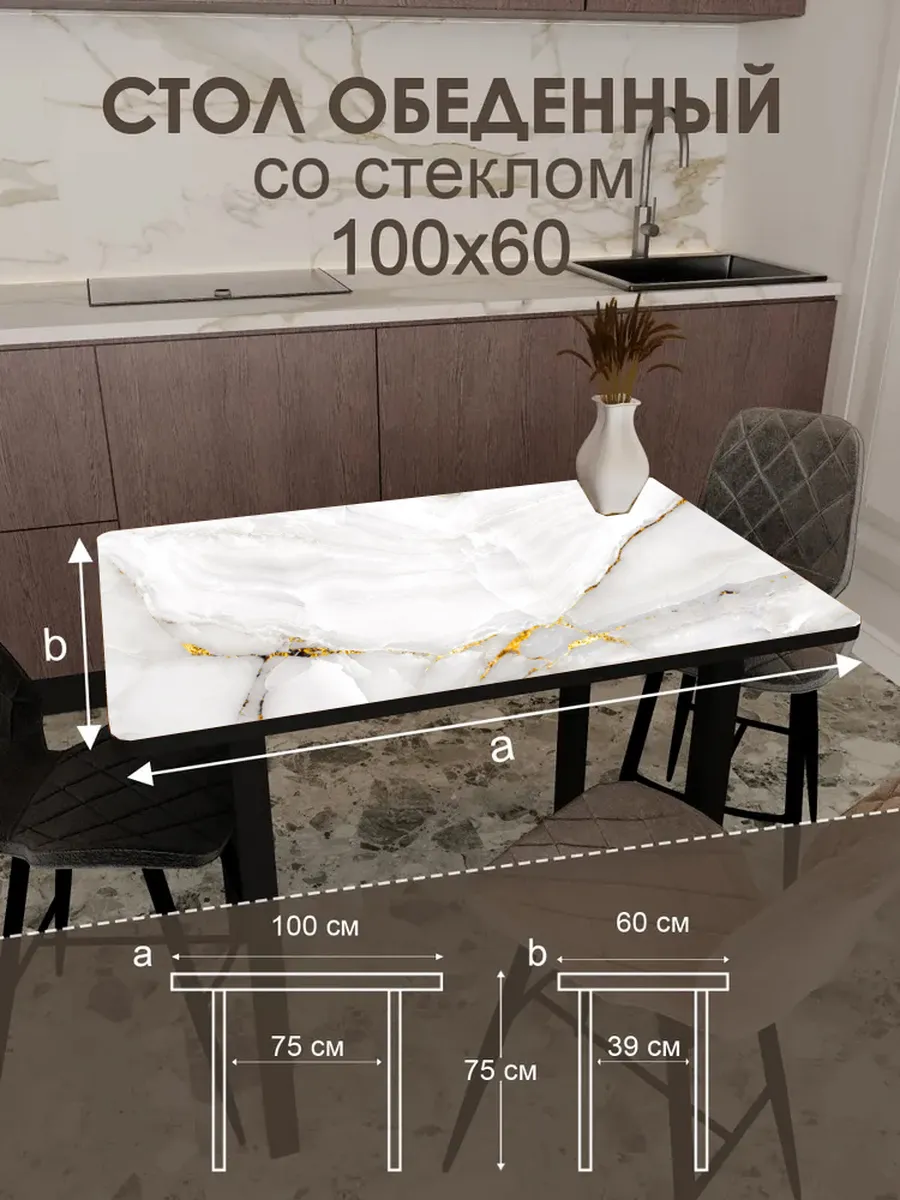 Обеденный стол "Золото на белом" 100x60 см - стильный и функциональный элемент интерьера, который станет незаменимым помощником на вашей кухне или в столовой.