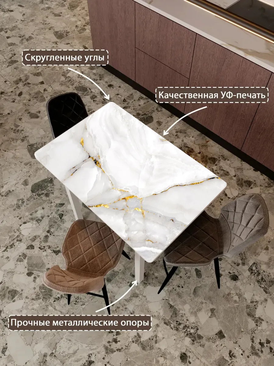 Обеденный стол "Золото на белом" 100x60 см - стильный и функциональный элемент интерьера, который станет незаменимым помощником на вашей кухне или в столовой.