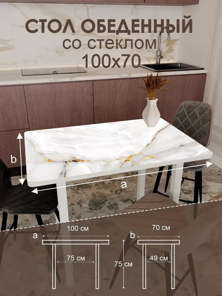Обеденный стол "Золото на белом" 100x70 см - стильный и функциональный элемент интерьера, который станет незаменимым помощником на вашей кухне или в столовой.