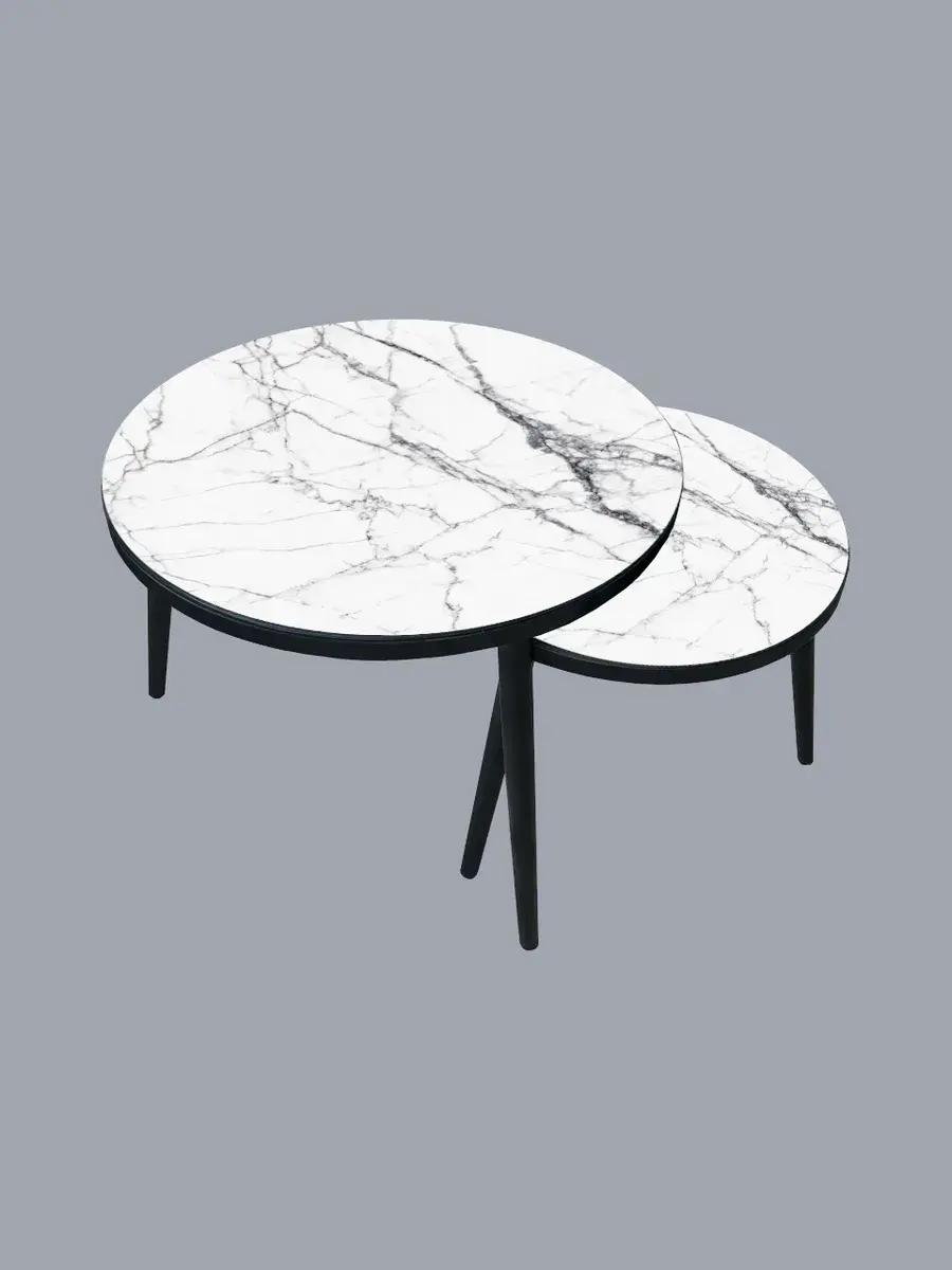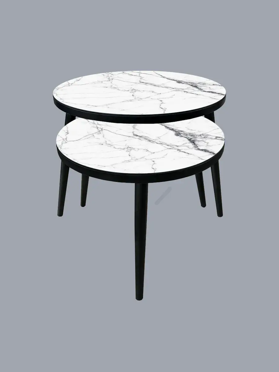 Представляем вам элегантную пару журнальных столиков, созданных для тех, кто ценит стиль и функциональность. Эти столики отличаются изысканным сочетанием чёрного цвета ножек и белоснежных столешниц, что придаёт интерьеру особый шарм и лёгкость.