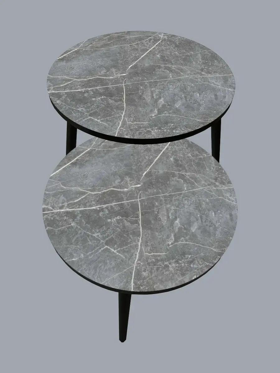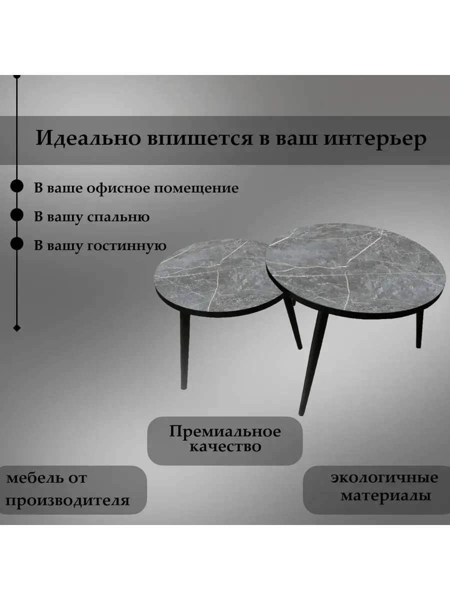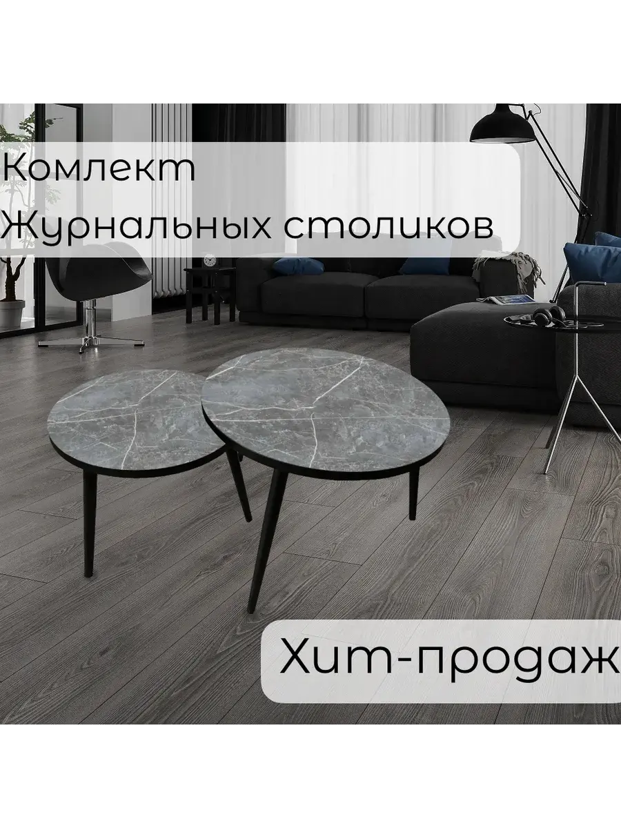 Представляем вам элегантную пару журнальных столиков, созданных для тех, кто ценит стиль и функциональность. Эти столики отличаются изысканным сочетанием чёрного цвета ножек и серых столешниц, что придаёт интерьеру особый шарм и элегантность.