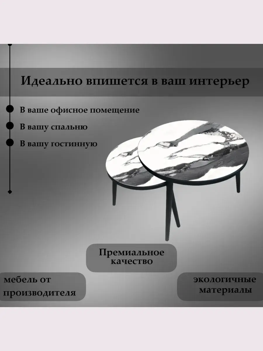 Представляем вам элегантную пару журнальных столиков, созданных для тех, кто ценит стиль и функциональность. Эти столики отличаются изысканным сочетанием чёрного цвета ножек и столешниц цвета «Гранит», что придаёт интерьеру особый шарм и лёгкость.