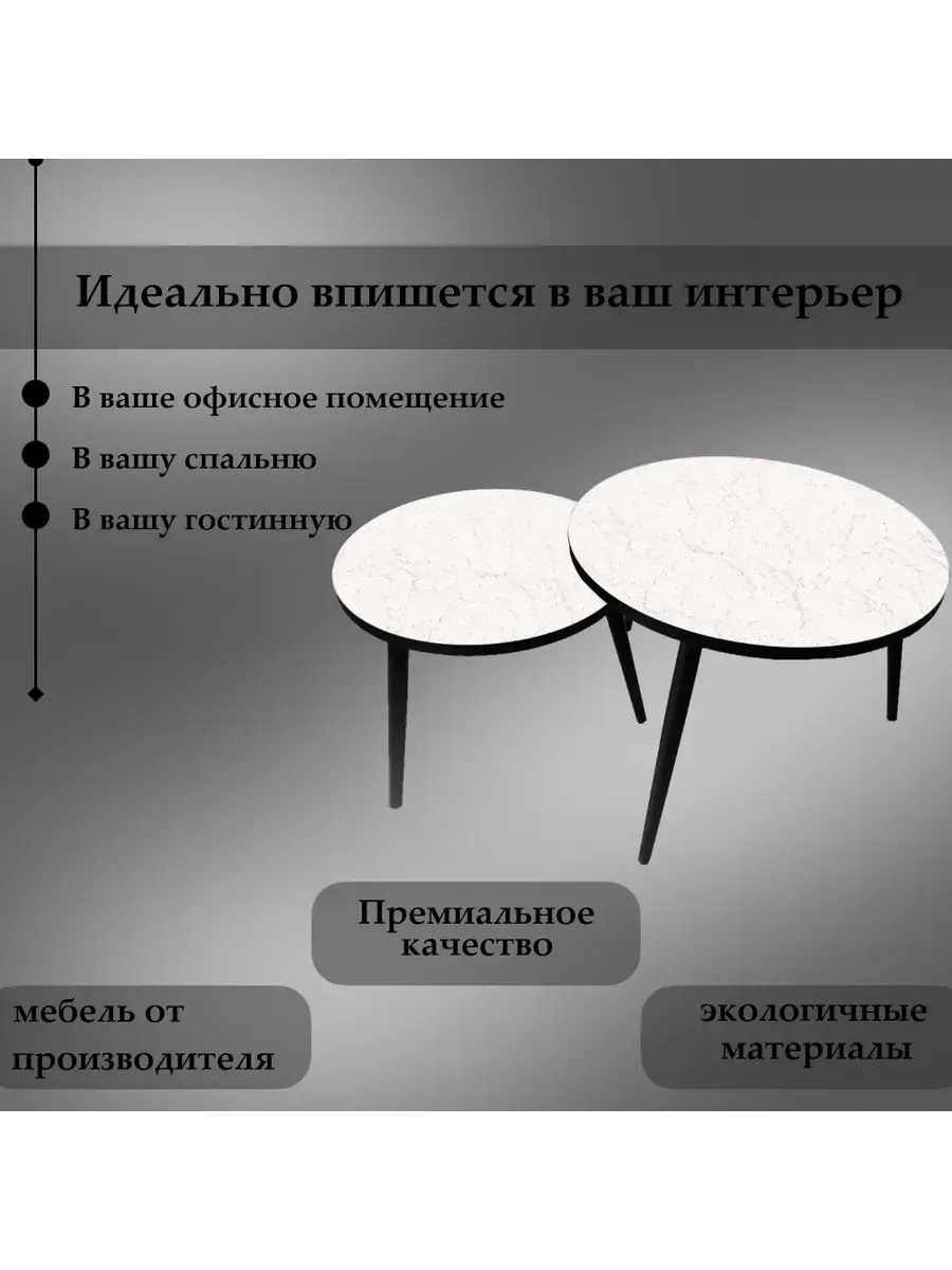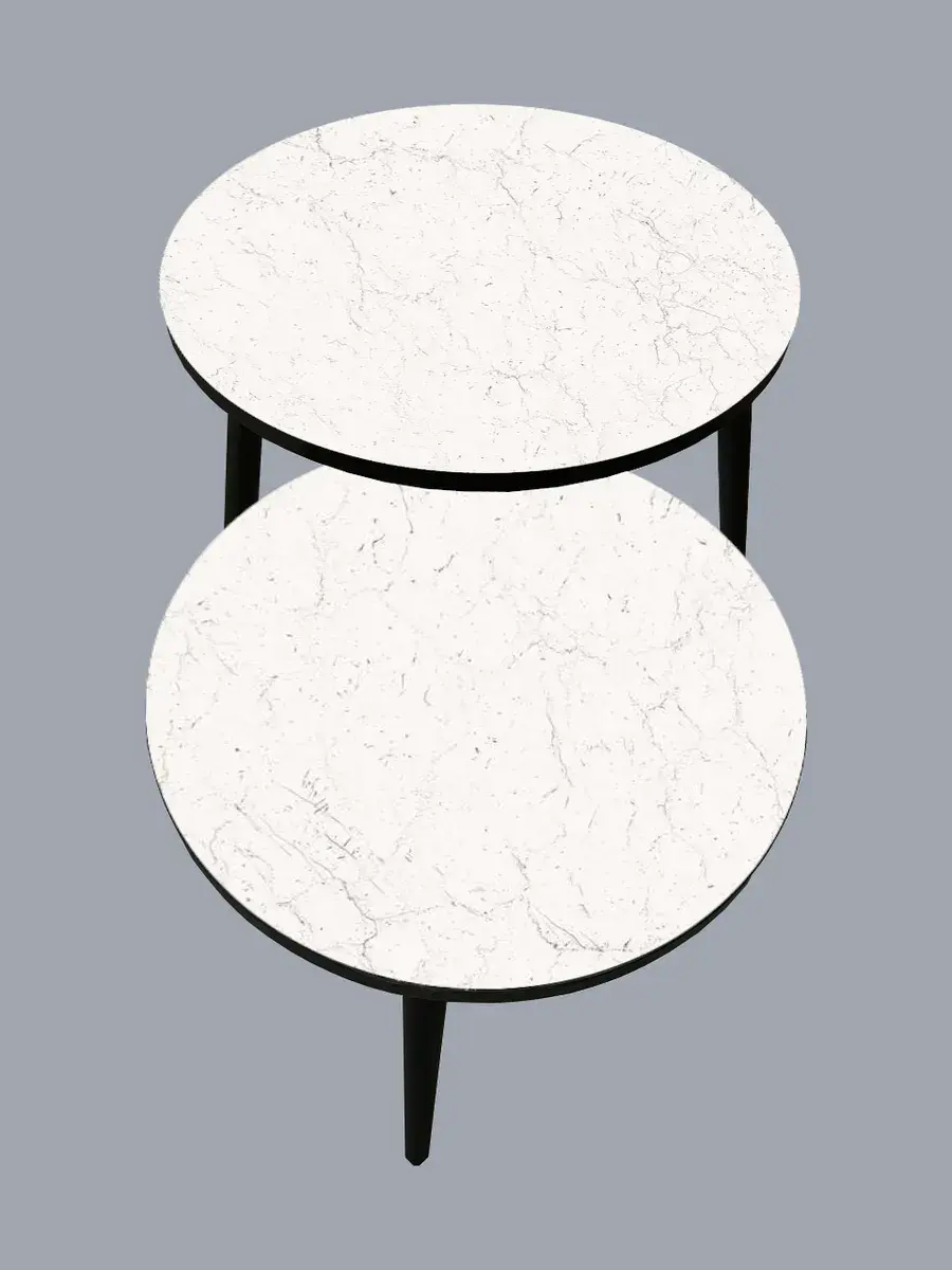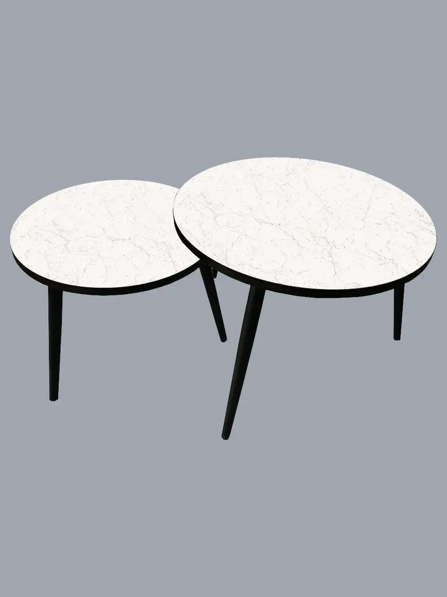 Представляем вам элегантную пару журнальных столиков, созданных для тех, кто ценит стиль и функциональность. Эти столики отличаются изысканным сочетанием чёрного цвета ножек и белого столешниц, что придаёт интерьеру особый шарм и лёгкость.