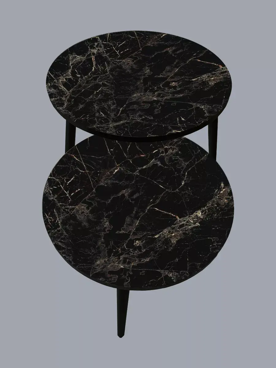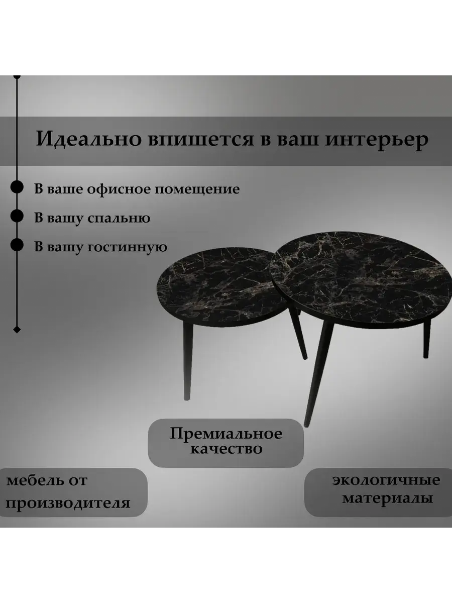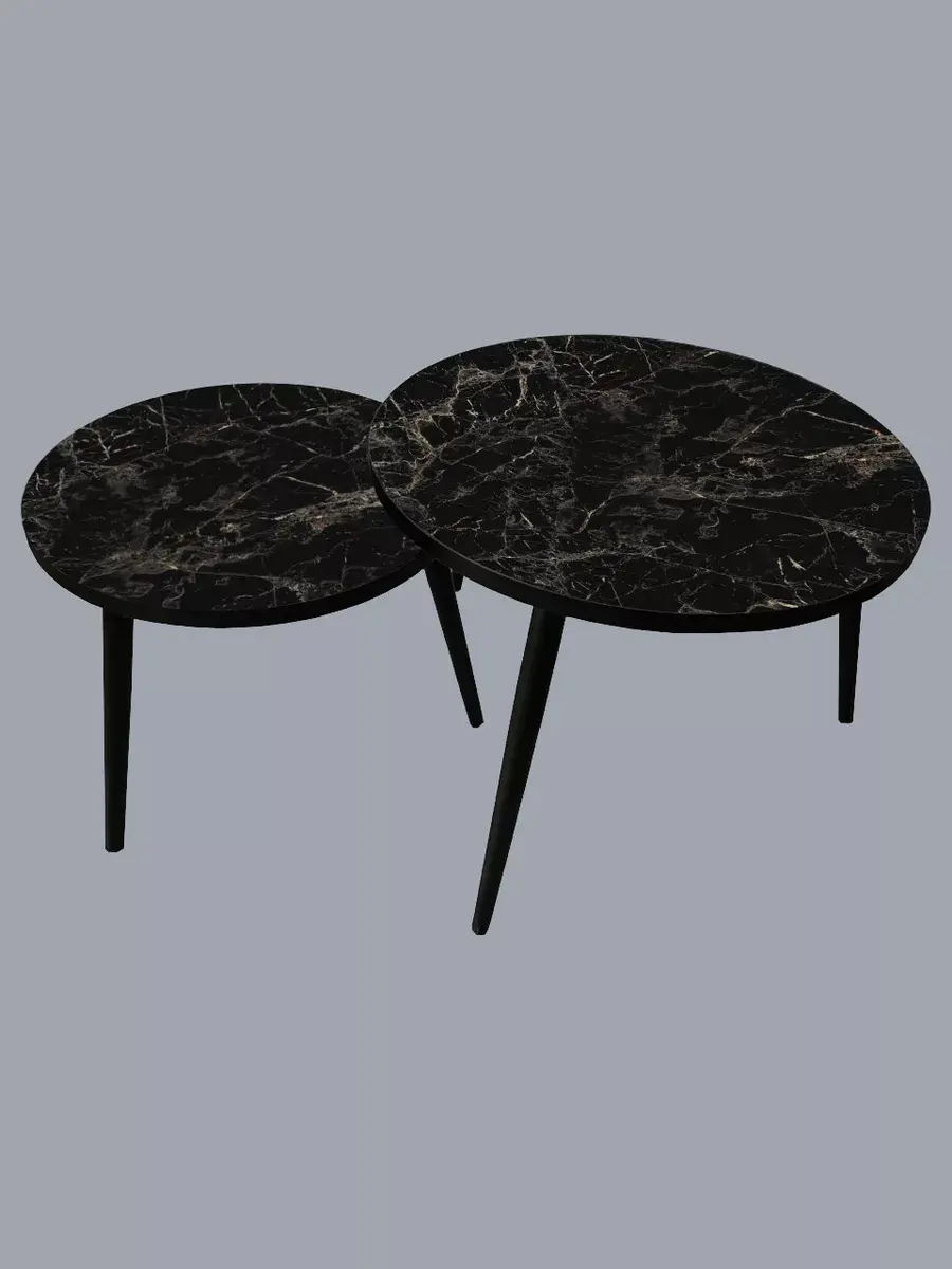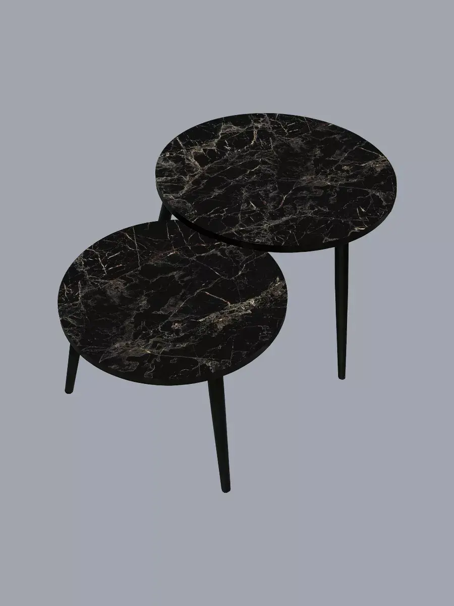 Представляем вам элегантную пару журнальных столиков, созданных для тех, кто ценит стиль и функциональность. Эти столики отличаются изысканным сочетанием чёрного цвета ножек и столешниц, что придаёт интерьеру особый шарм и элегантность.