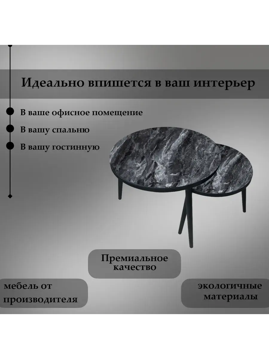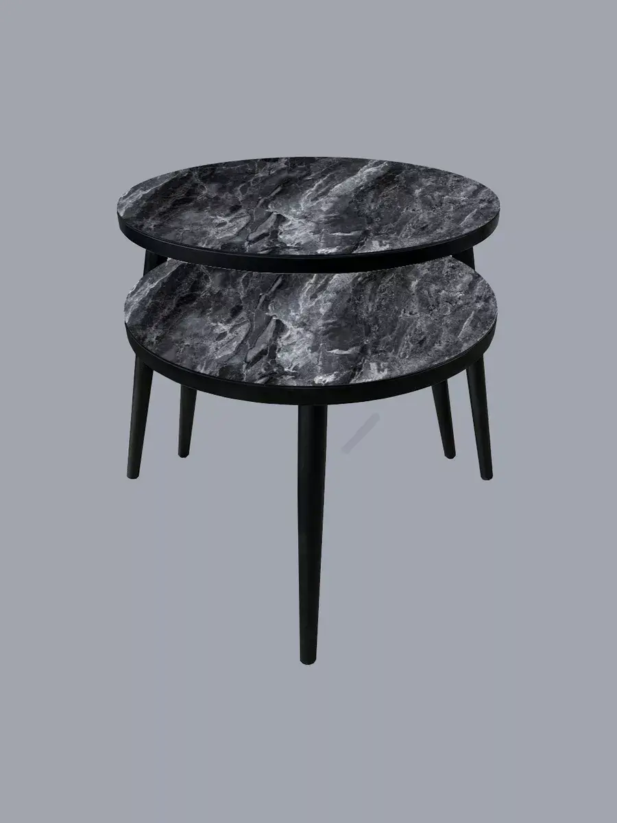 Сочетание чёрного и серого цветов создаёт гармоничный контраст, который привлекает внимание и делает интерьер более выразительным. Серые столешницы придают столикам особую изысканность и утончённость, а чёрные ножки добавляют им устойчивости и надёжности.