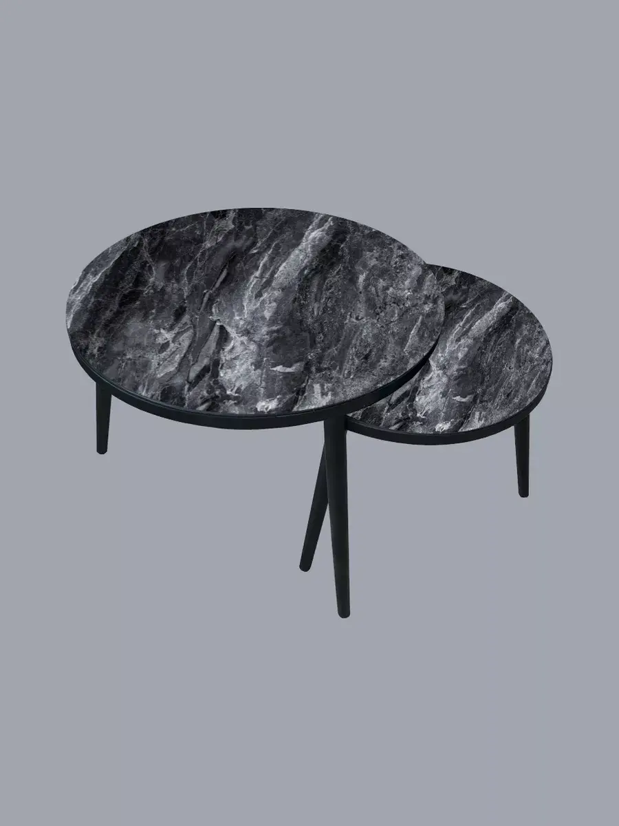 Ножки столиков выполнены в чёрном цвете, что придаёт им строгий и лаконичный вид. Столешницы же имеют серый цвет, который добавляет интерьеру спокойствия и умиротворения. Благодаря своей цветовой гамме, эти столики станут отличным дополнением к любому стилю оформления.